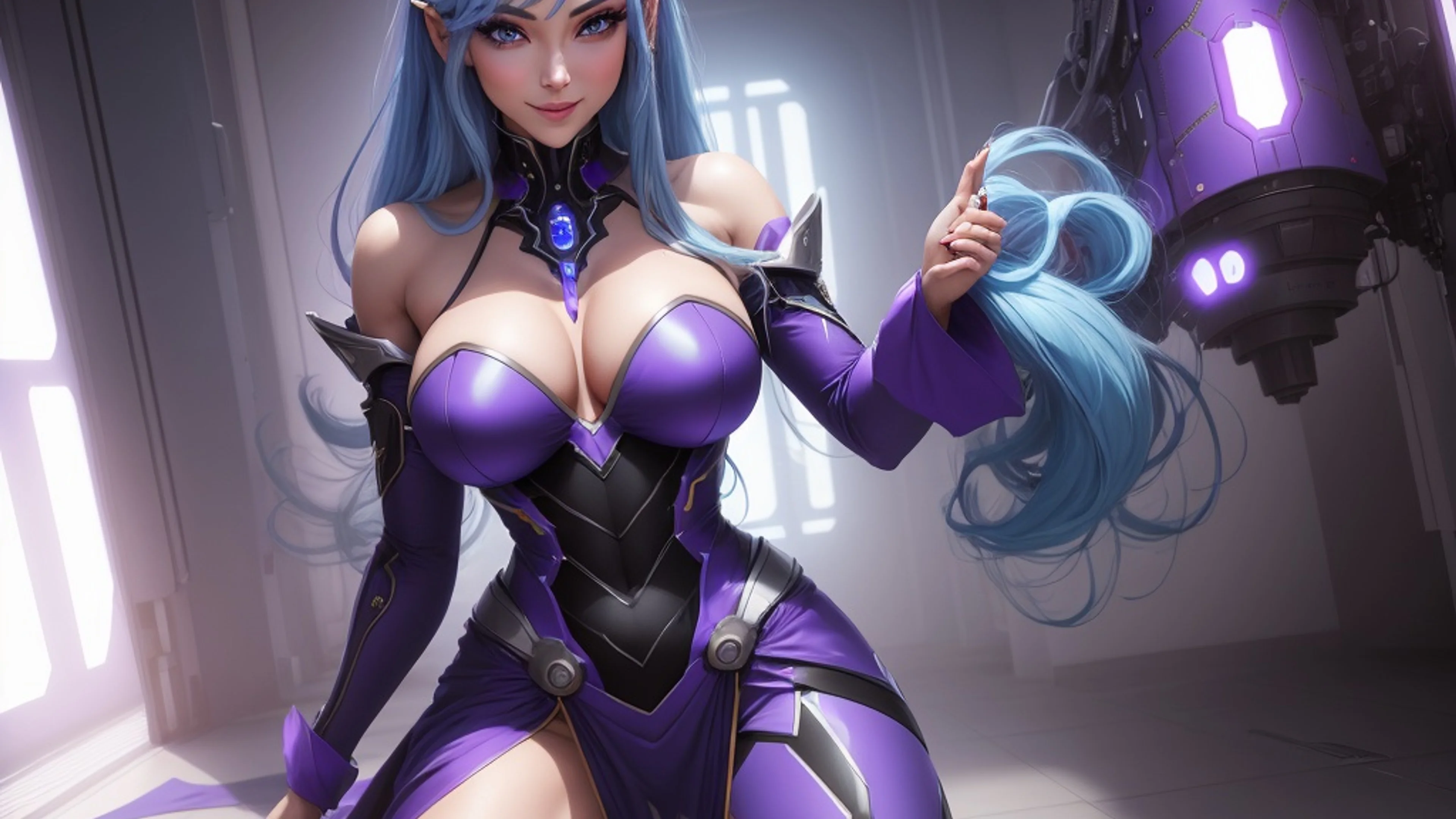 Cyber Lamia Seductress — Sci-fi Jigsaw Challenge — The Cyber Lamia Seductress puzzle depicts a stunning anime illustration of a curvy, voluptuous woman with purple demon skin and curly golden blonde.