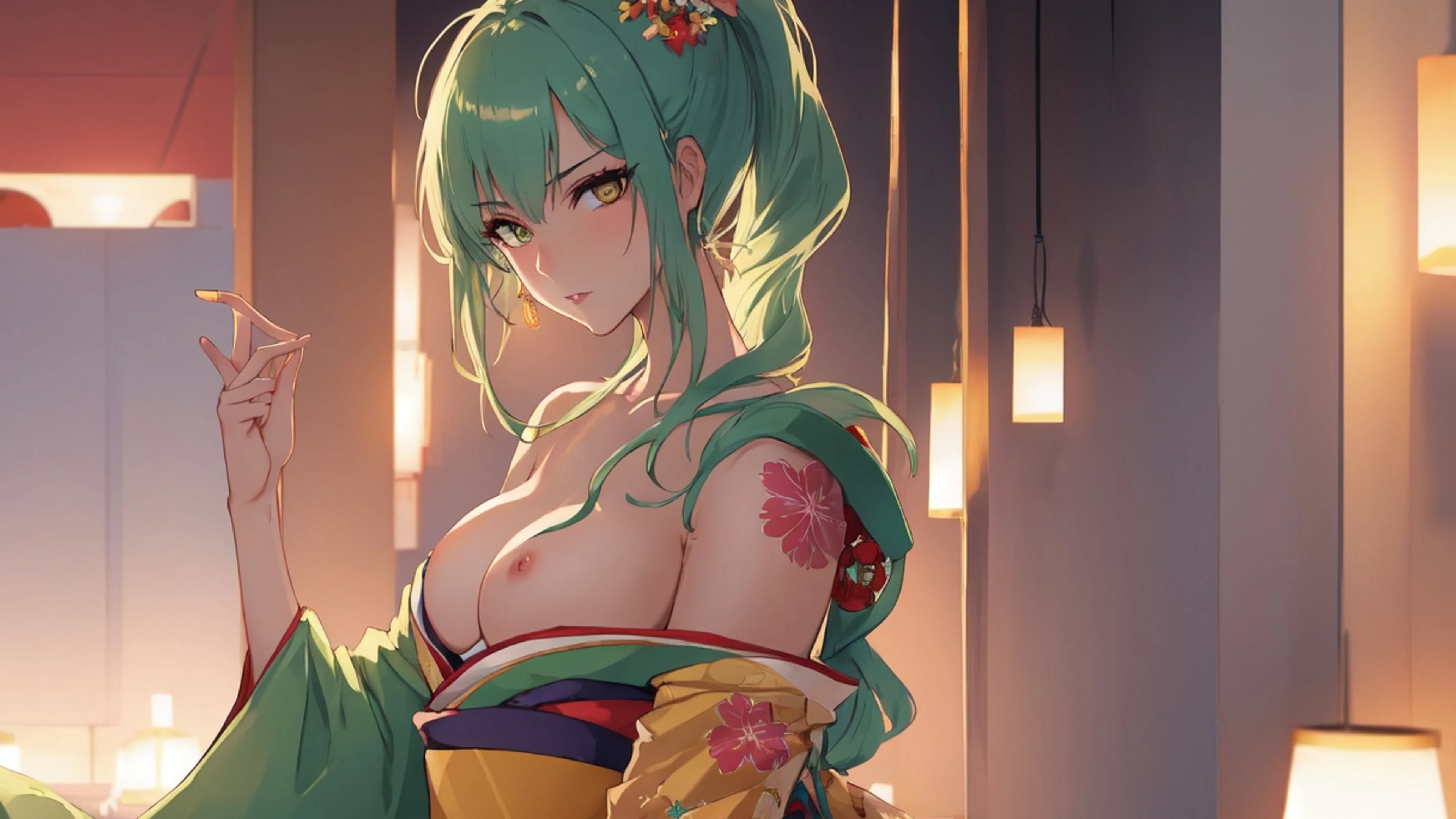 Sensual Mint Kimono Monster Girl Jigsaw — Puzzle Game Wallpaper desktop preview