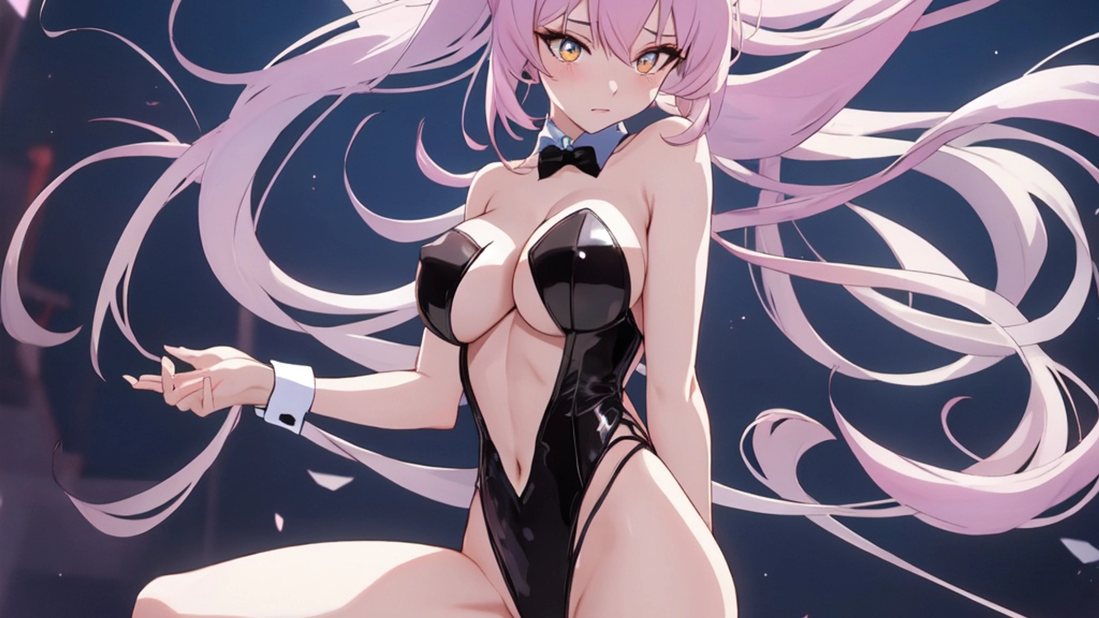 Sensual Witch Unveiled — Word Reveal Challenge — The Sensual Witch Unveiled artwork is a captivating anime illustration that showcases a young woman in her 20s, dressed in a Playboy bunny costume wit.